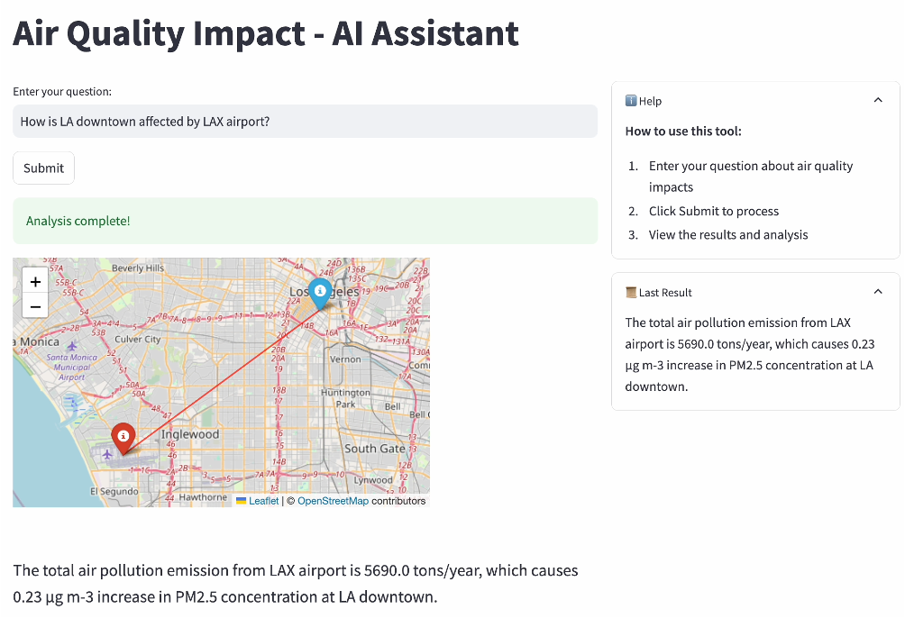 We employ large language models in air quality risk communication to the public. We aim to develop air quality AI agents to visualize emission contributions and source impacts, as well as to quantify health burdens.